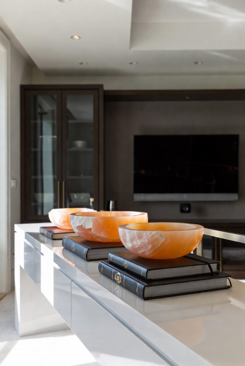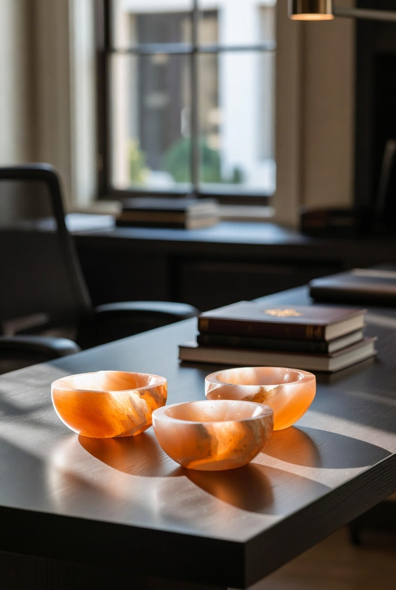 Introducing the Round Orange Selenite Bowl – A Radiant Touch of Earth’s Energy