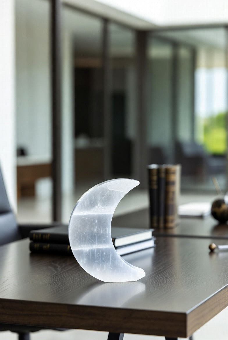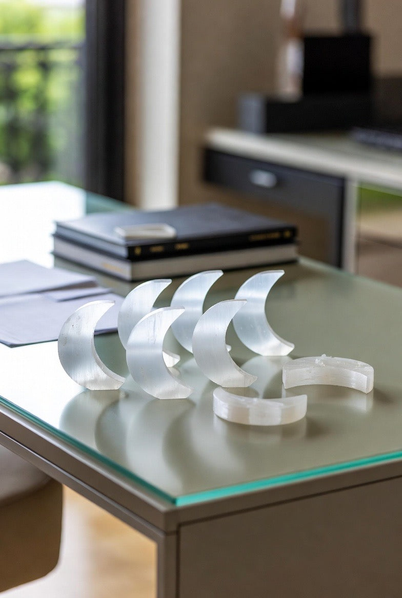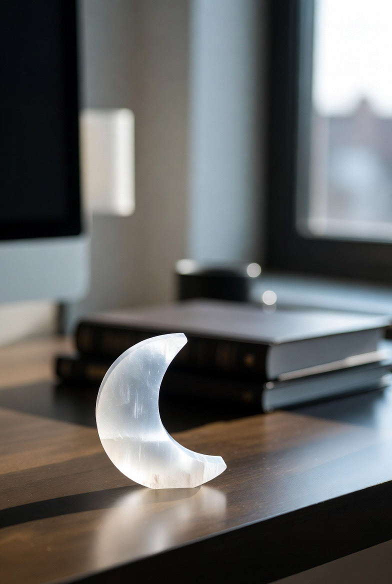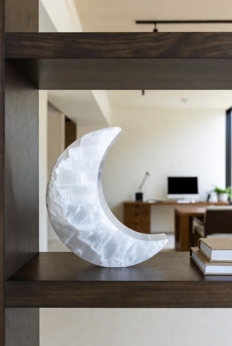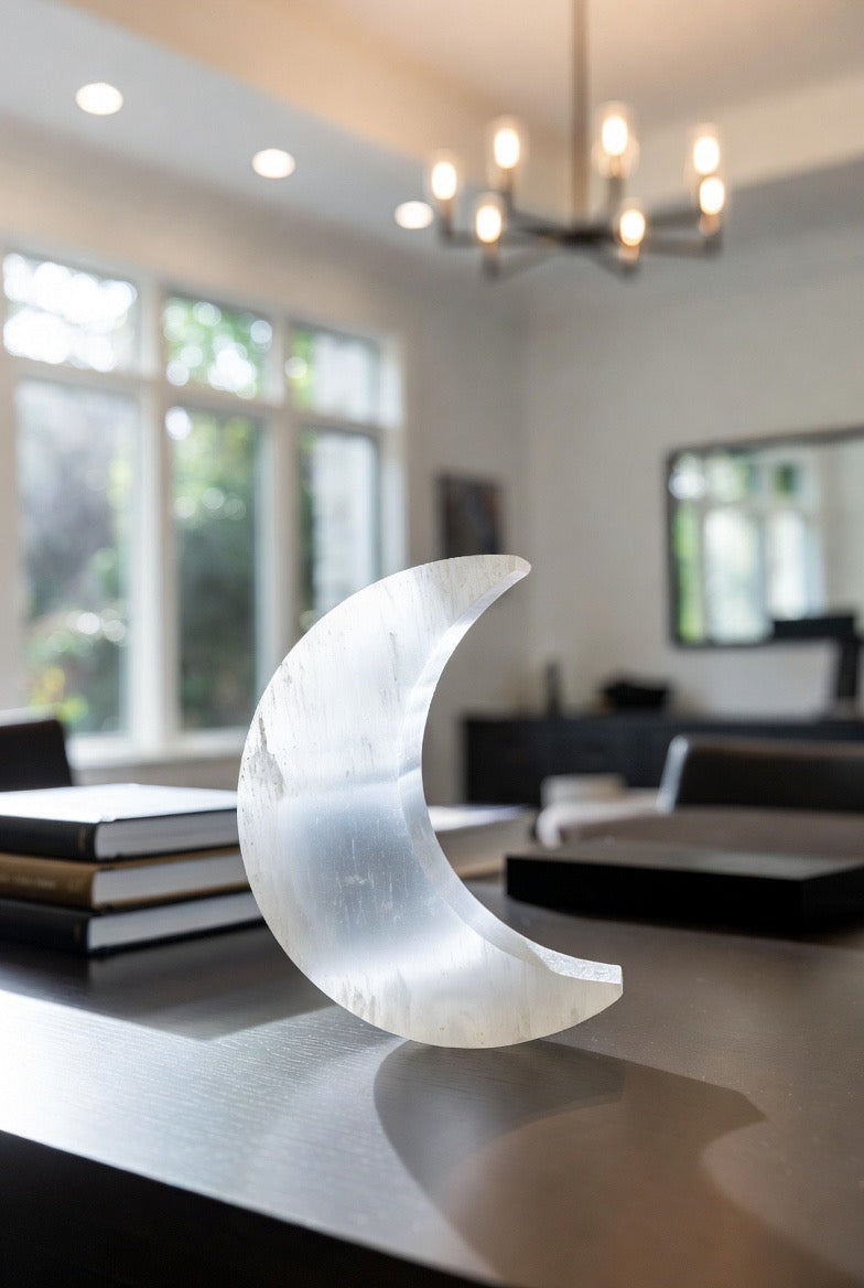 Bring calming energy and celestial charm into your home with our Selenite Crescent Moon Decor — the perfect blend of elegance and spiritual serenity.