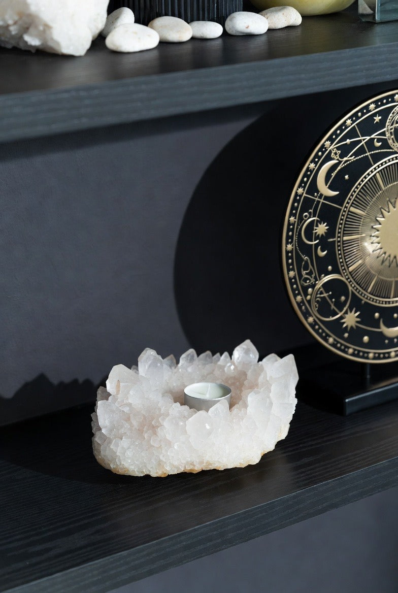 🕯️✨ Clear Quartz Candle Holder with Tea Light