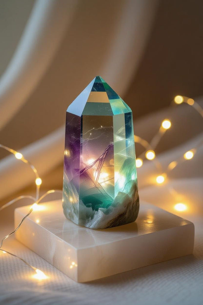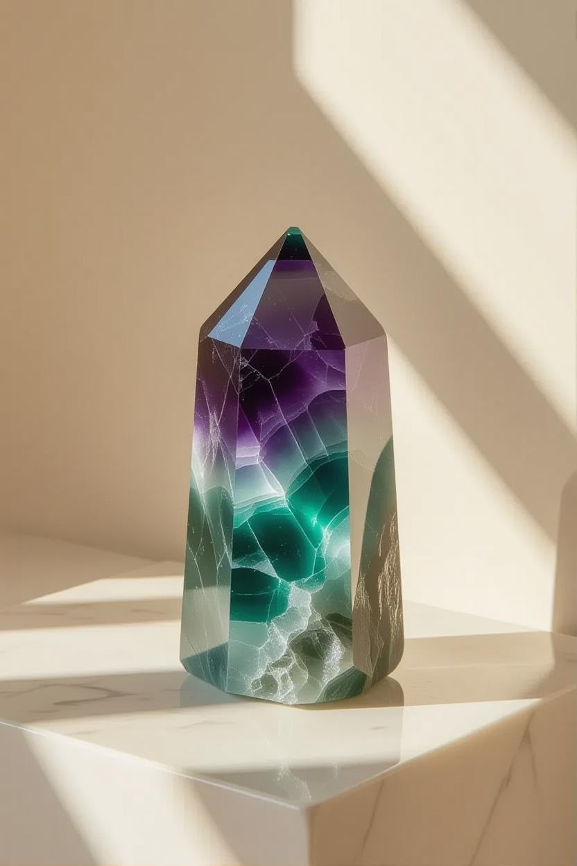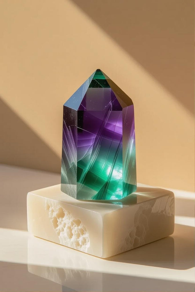 Rainbow Fluorite Polished Point – A Striking Fusion of Art, Energy & Design