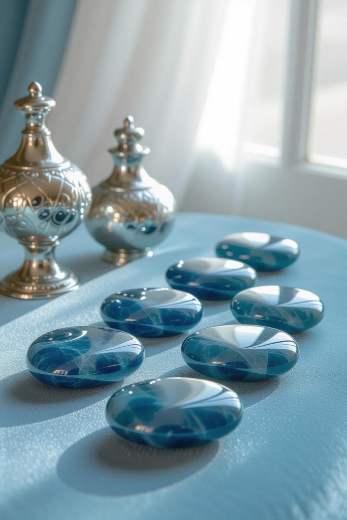 🌊 The soft blue tones evoke a sense of peace, clarity, and modern refinement, making it the perfect accent for minimalist trays, coffee tables, or curated crystal collections.