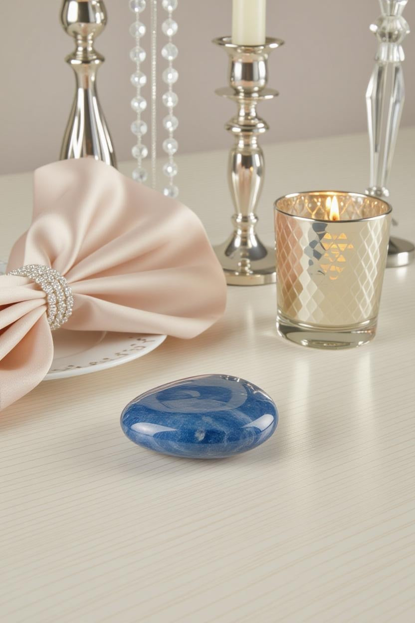 Rare Polished Blue Quartz Palm Stone – Tranquility Meets Timeless Design