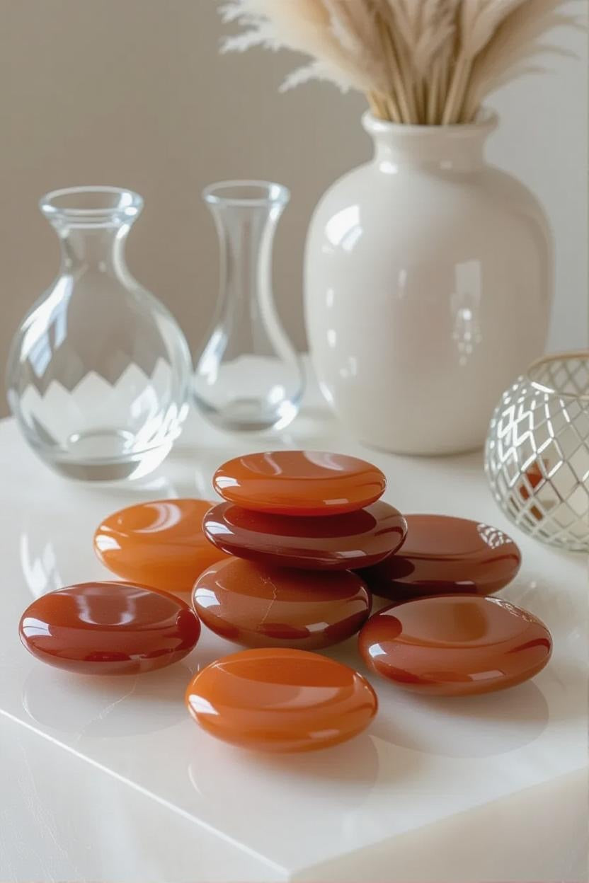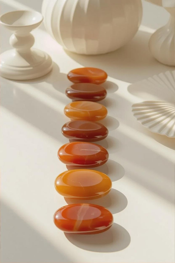 🧡 Known for its rich hues of deep orange, amber, and russet red, Carnelian brings both visual warmth and energetic vitality to any room.