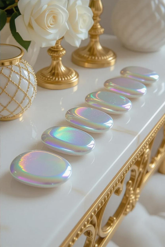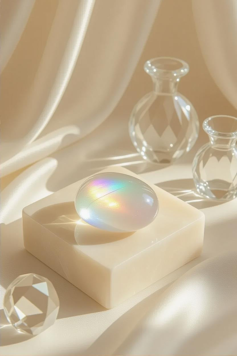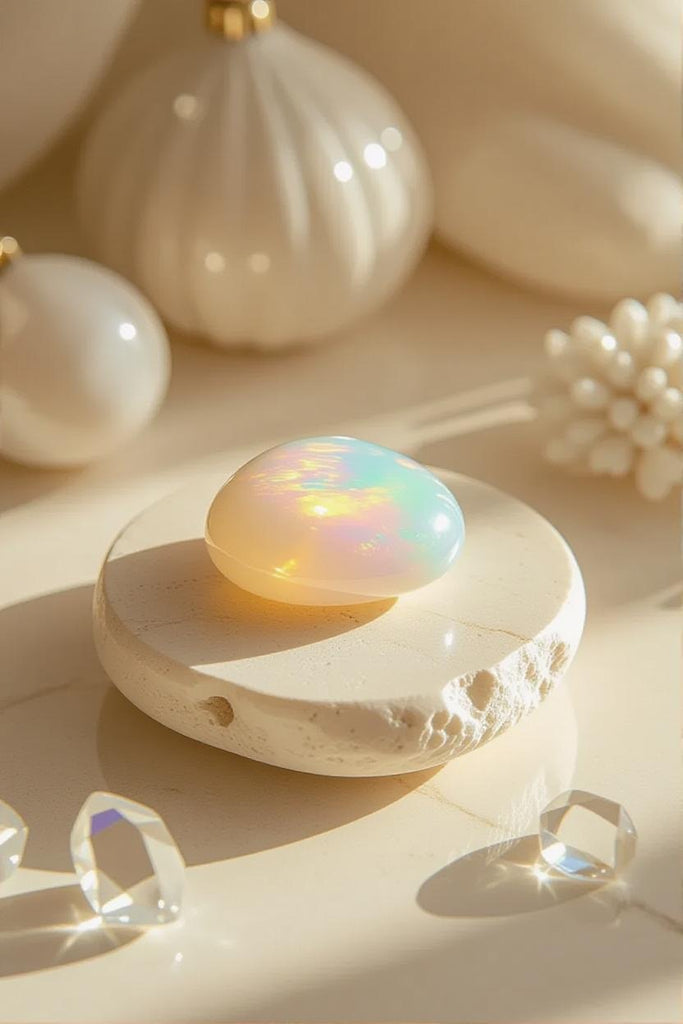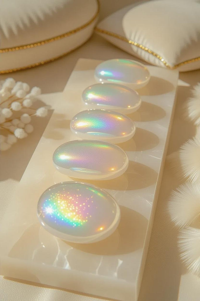 💎 Hand-polished to a smooth, radiant finish, this exceptional piece showcases a delicate iridescent sheen that dances with light, reflecting soft hues of pearl, silver, and pastel rainbow tones.