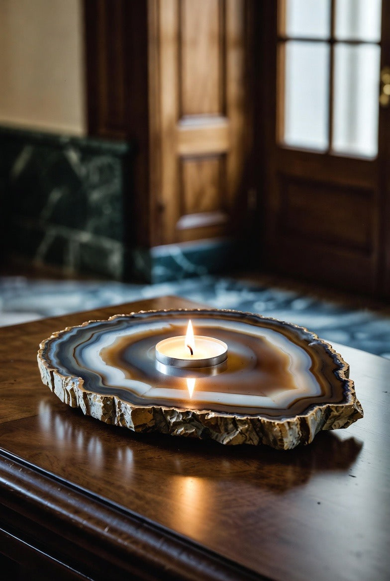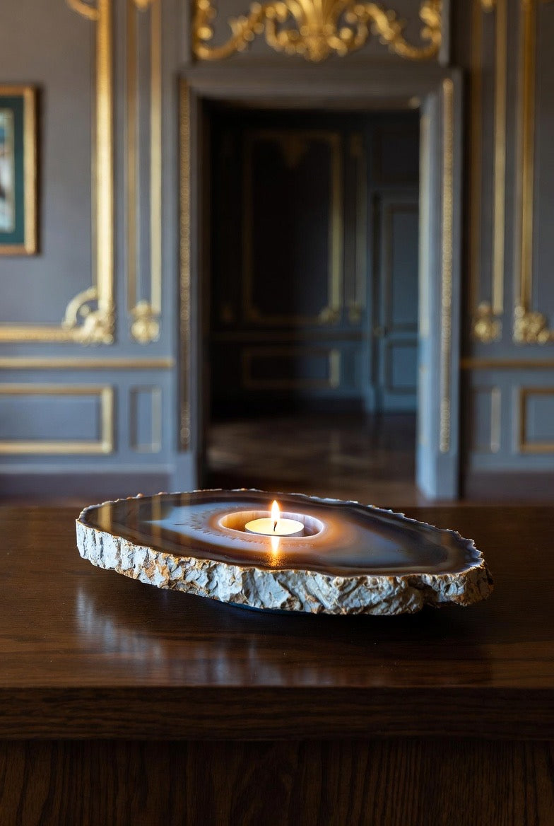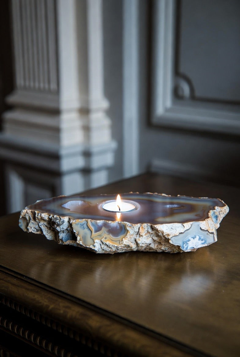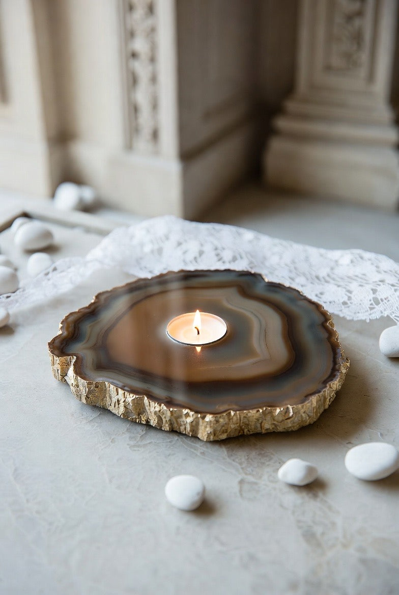 💎 Introducing our Thick Slab Agate Candleholder — a stunning blend of earthy elegance and modern glamour perfect for: