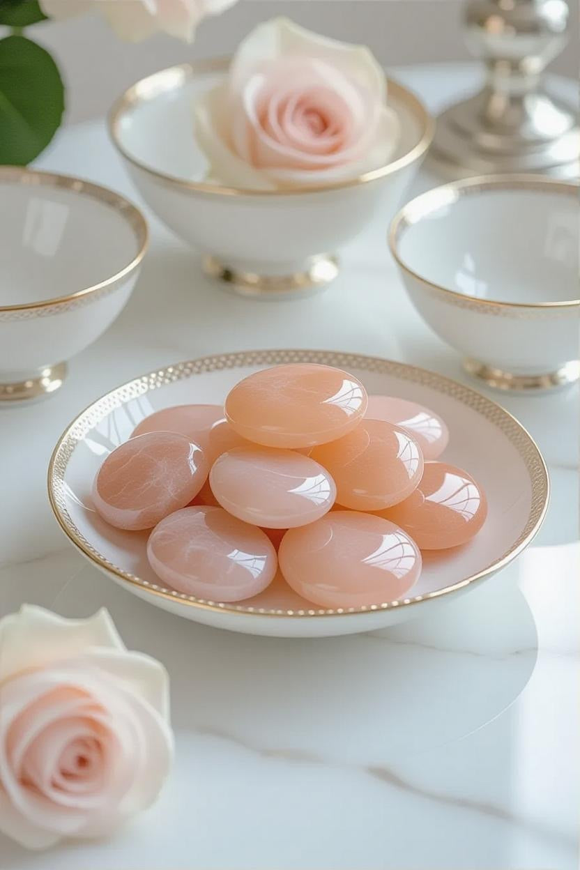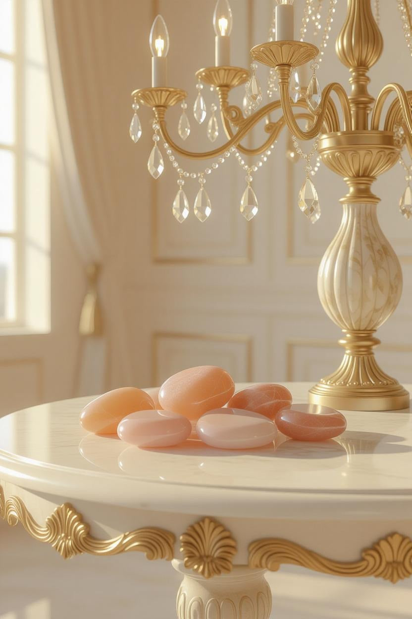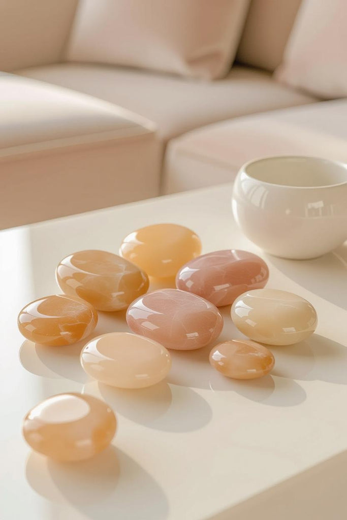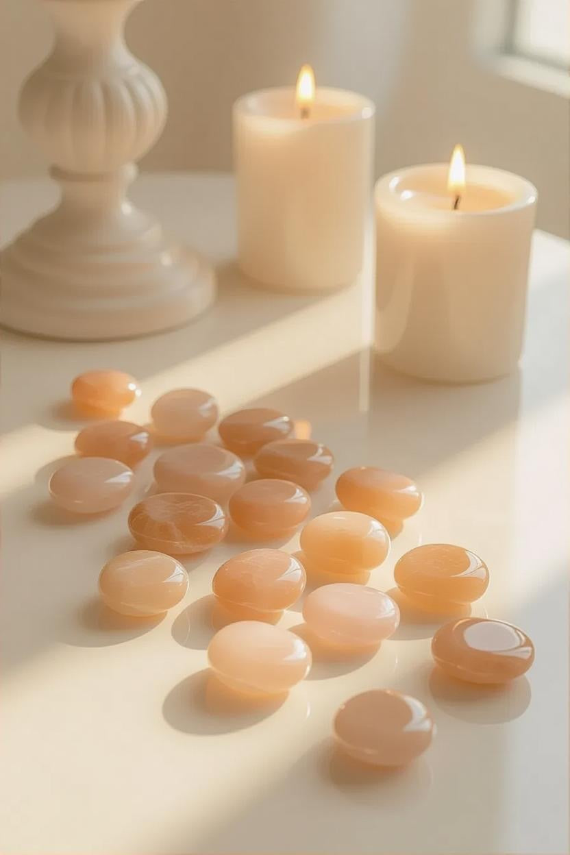 - Elegant Aesthetic – With a silky, iridescent sheen and warm tones, these stones add a serene and inviting glow to marble trays, velvet cushions, or artisan ceramics.