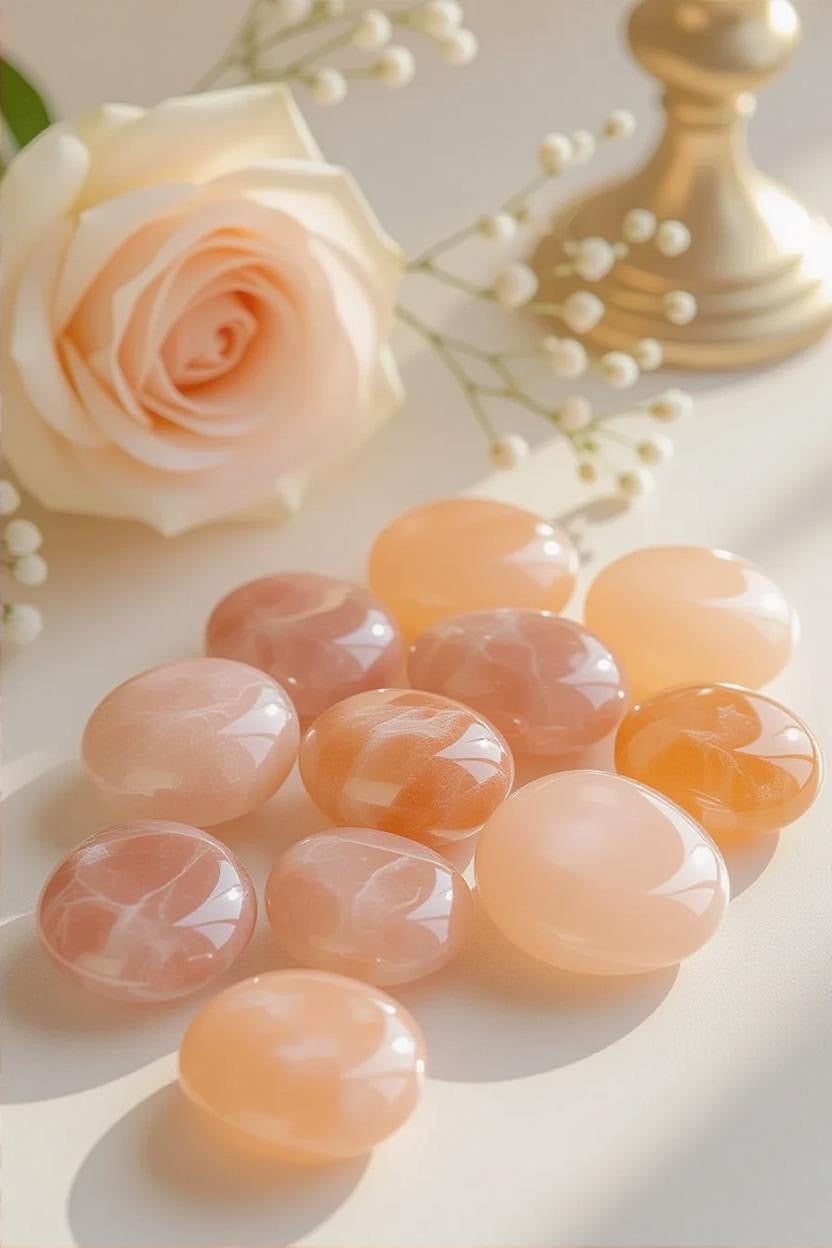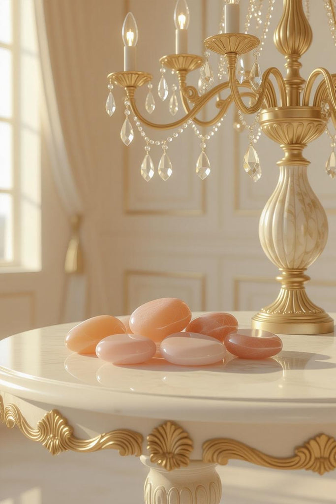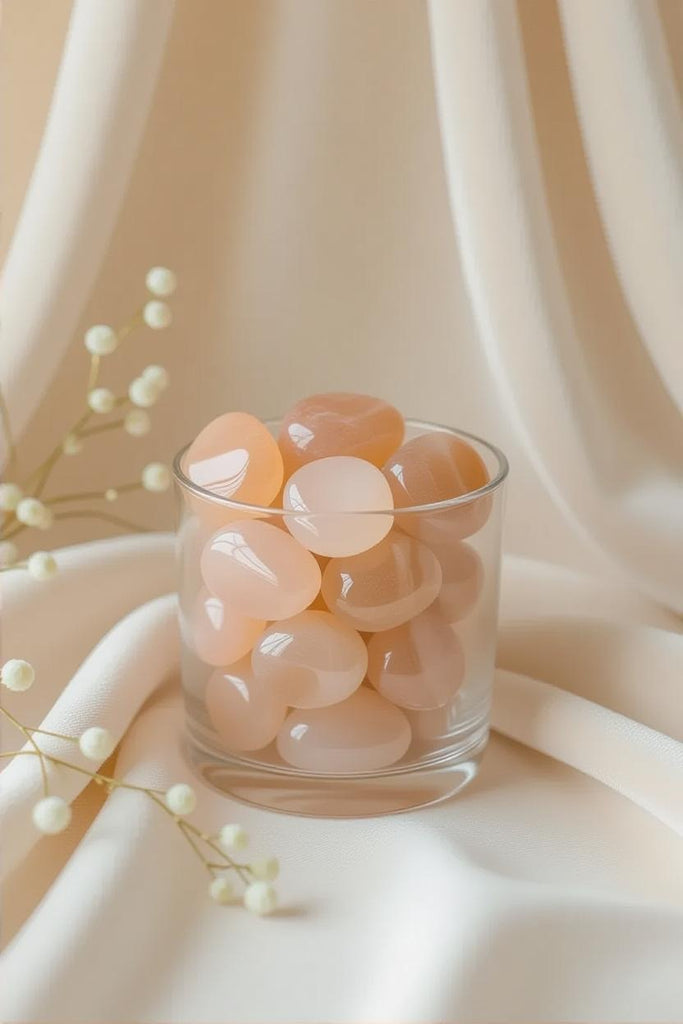 Introduce a touch of soft, celestial warmth to your luxury decor with Peach Moonstone Tumbled Gemstones. Their delicate peachy-pink hues and gentle shimmer evoke calm, comfort, and understated sophistication—perfect for those who appreciate refined beauty with a soulful glow.