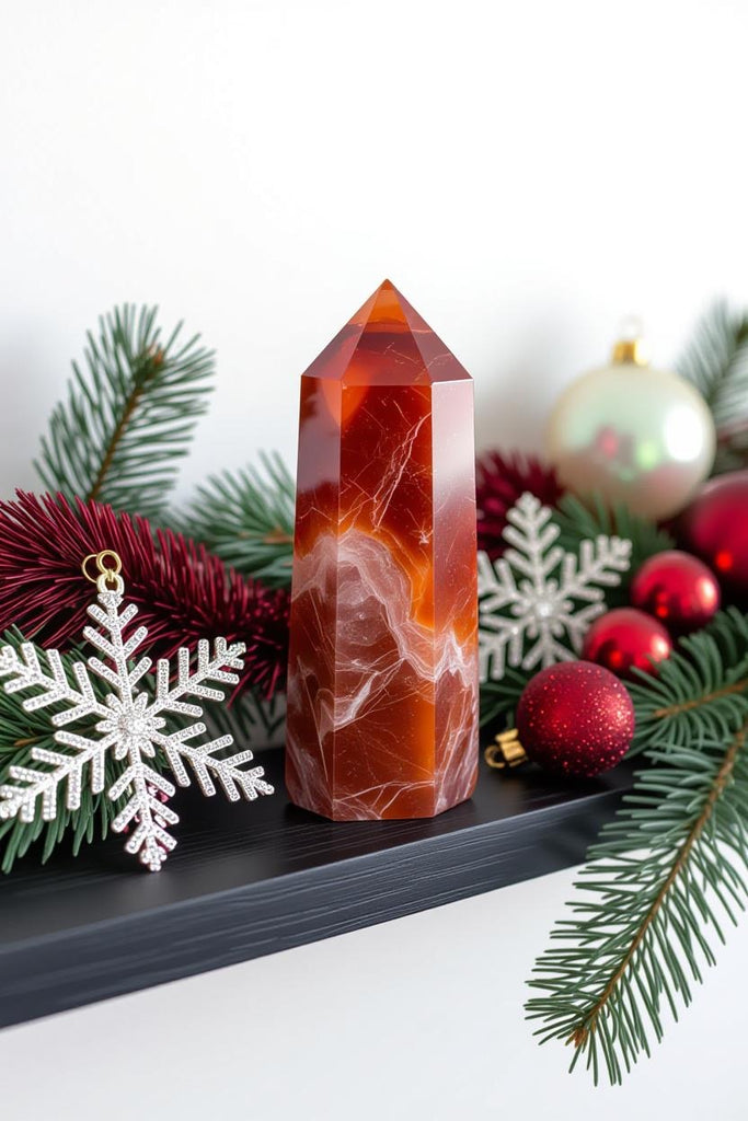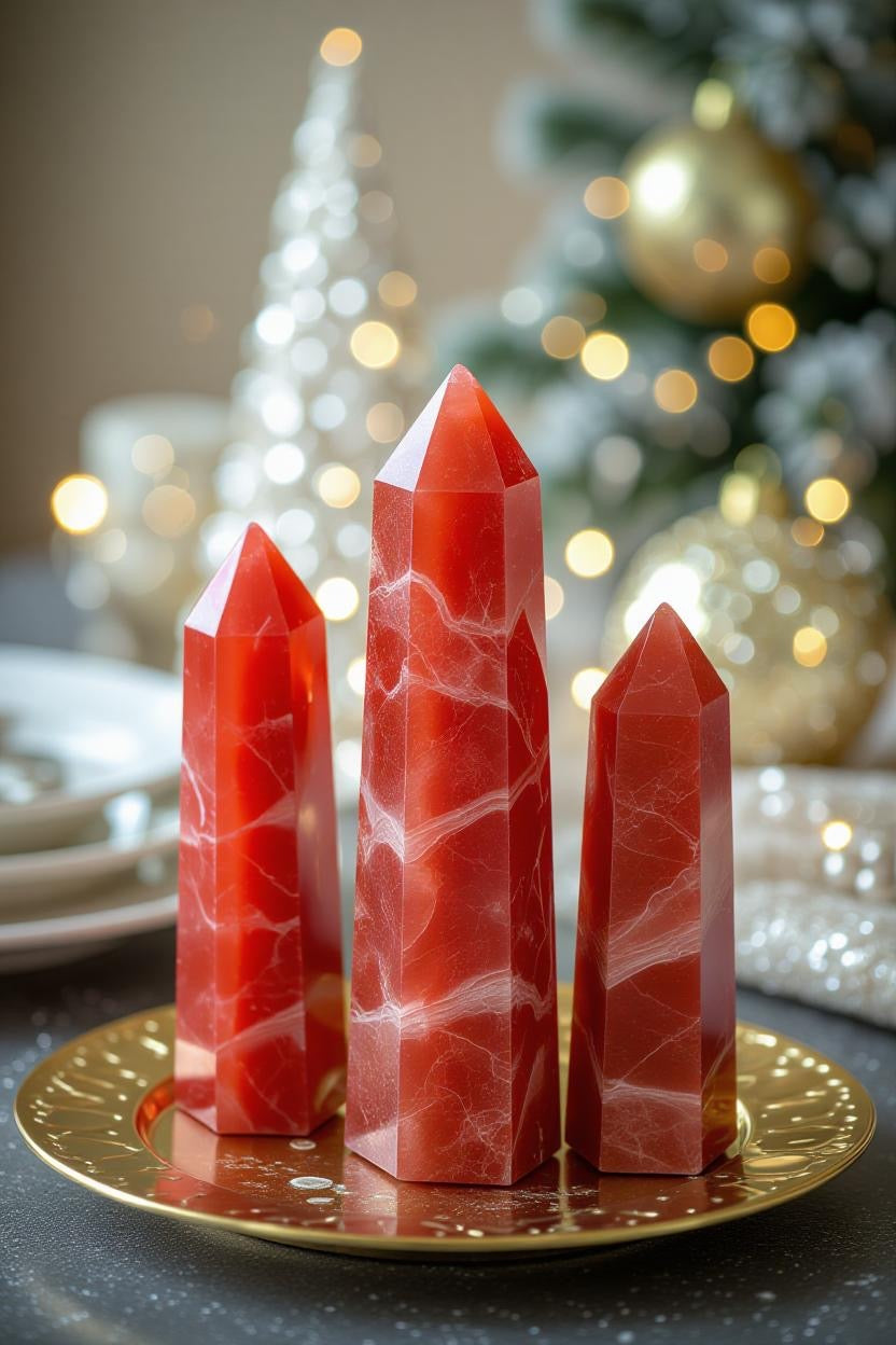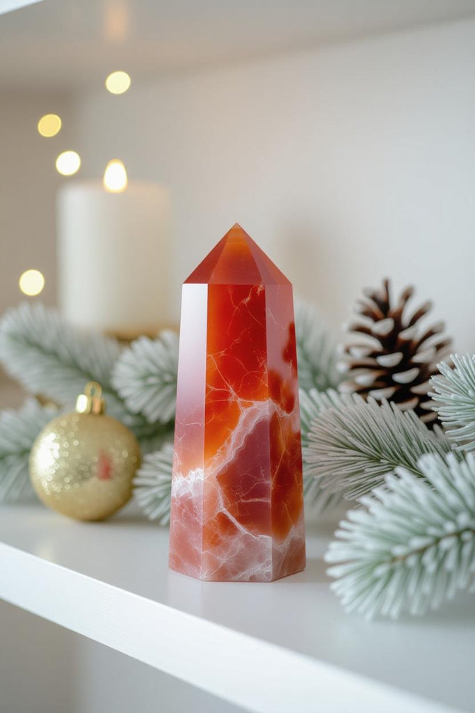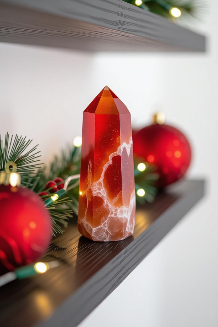 With its deep crimson hue and naturally faceted form, this crystal evokes the richness of the season — reminiscent of holly berries, candlelit gatherings, and the warm glow of winter evenings. Perfectly suited for luxury holiday styling, it pairs beautifully with velvet textures, evergreen garlands, gold accents, and candlelight.