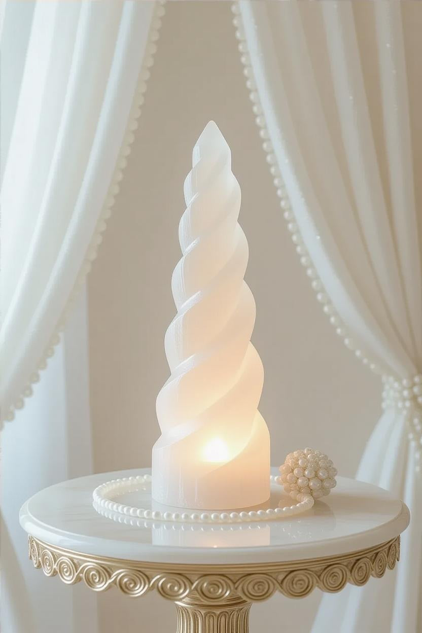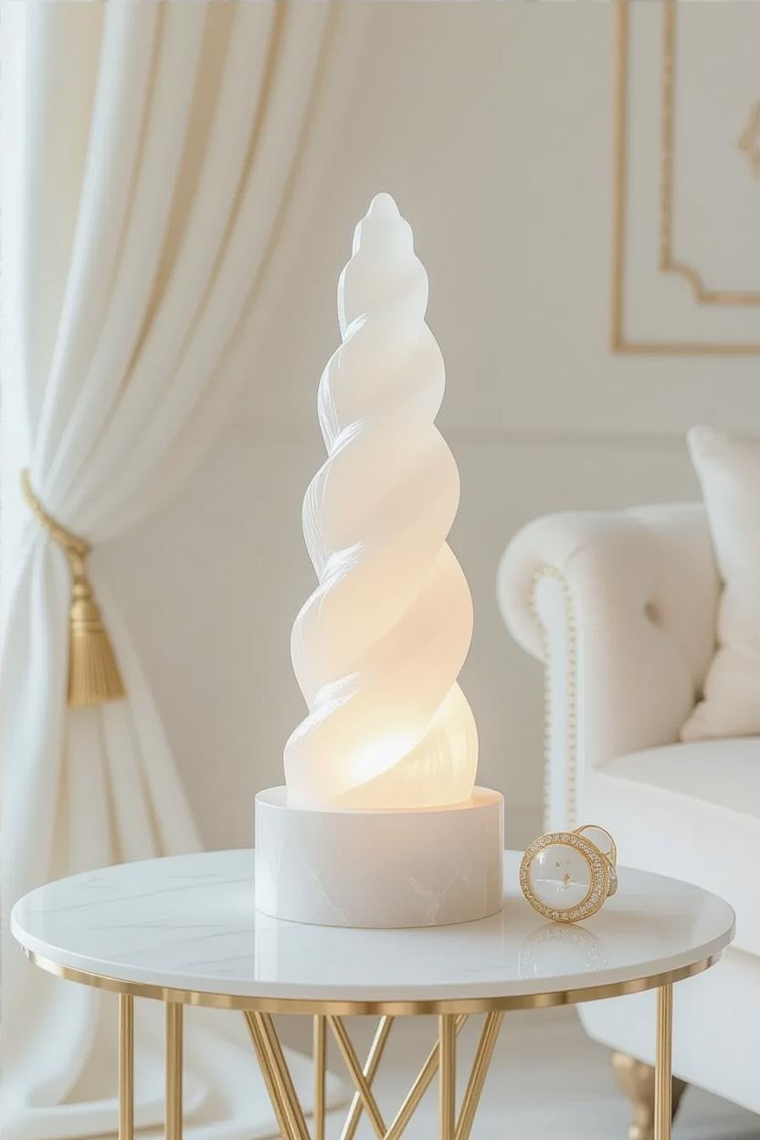 Elevate your home with the serene glow and sculptural beauty of our Selenite Twisted Flame – a refined accent piece designed for those who appreciate understated opulence.