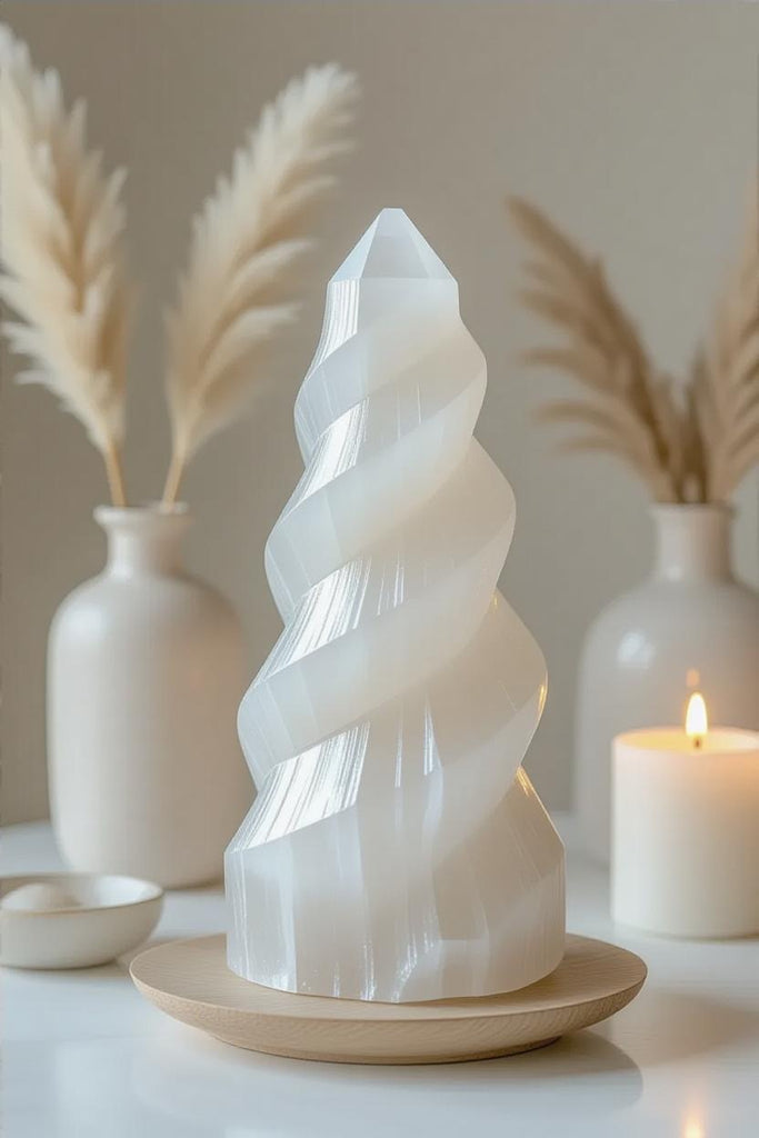 Introducing the Selenite Twisted Flame – A Masterpiece of Natural Luxury