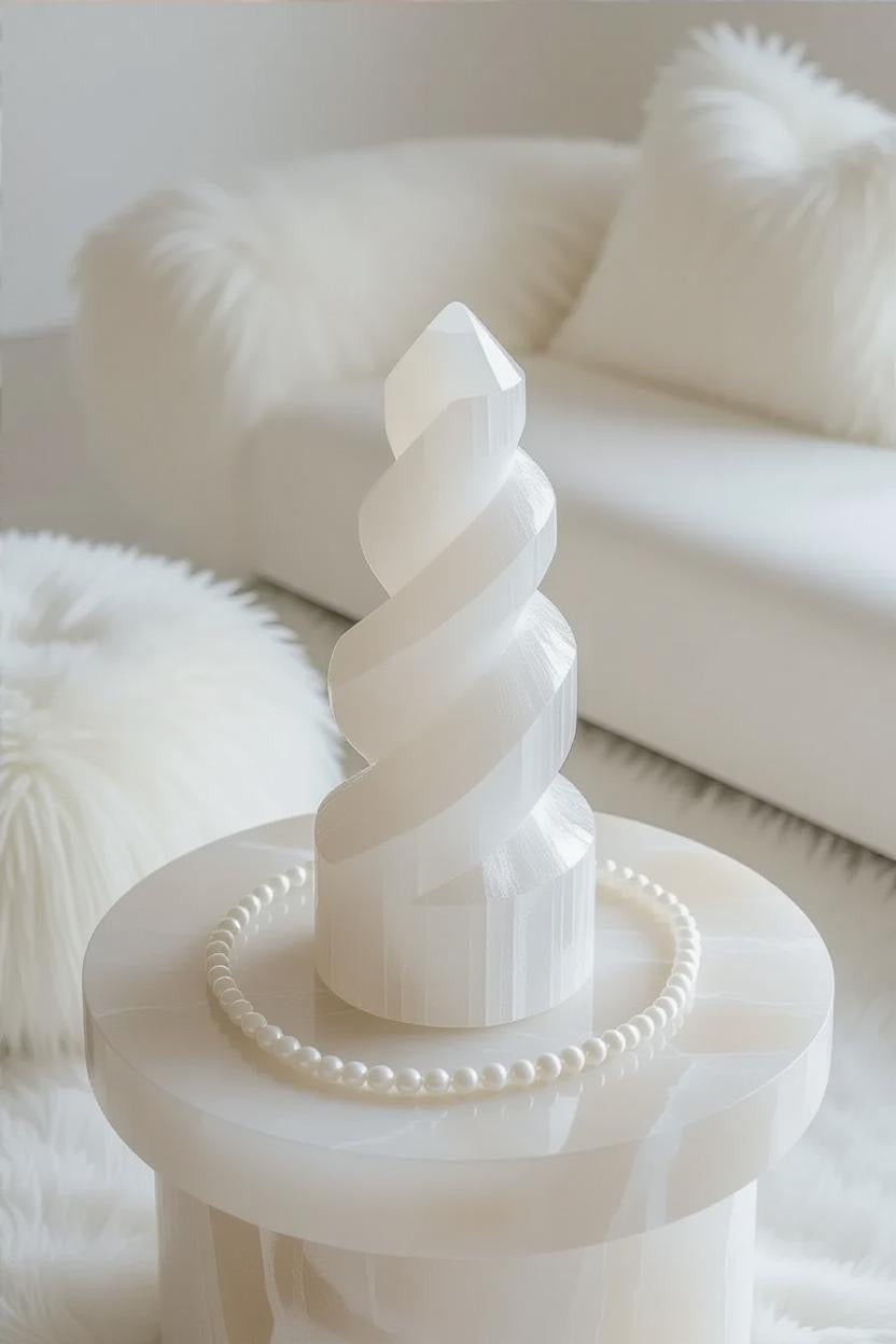 Perfect for entryways, living rooms, or curated shelves, the Selenite Twisted Flame exudes a calming aura while serving as a striking centerpiece. Its luminous white sheen complements both minimalist and maximalist interiors, offering a harmonious blend of natural beauty and refined sophistication.