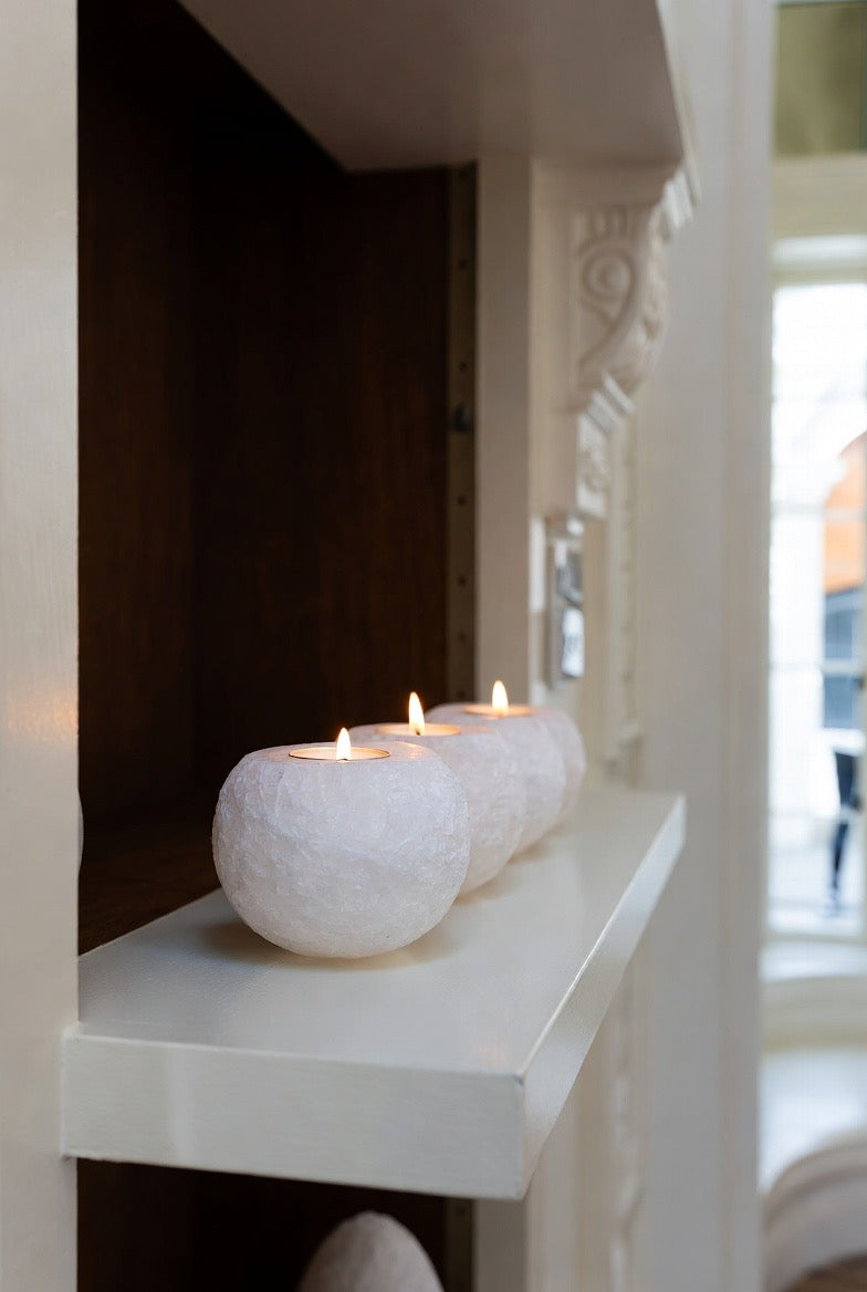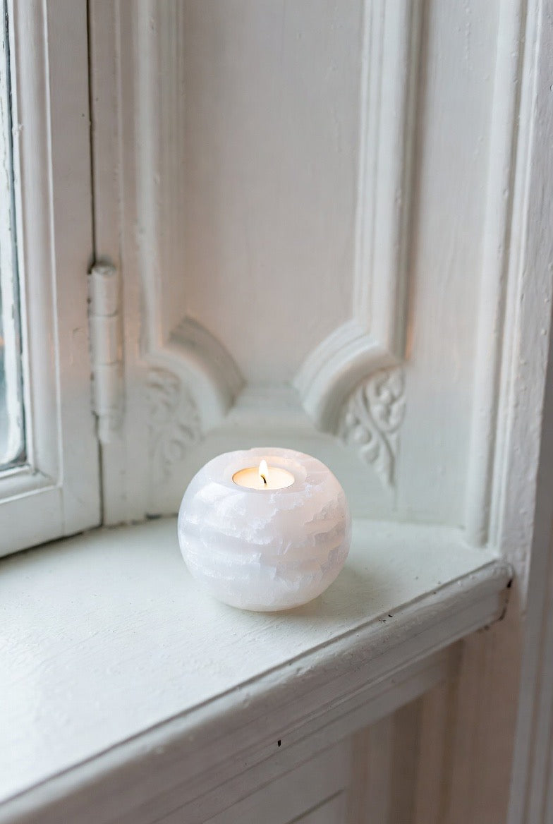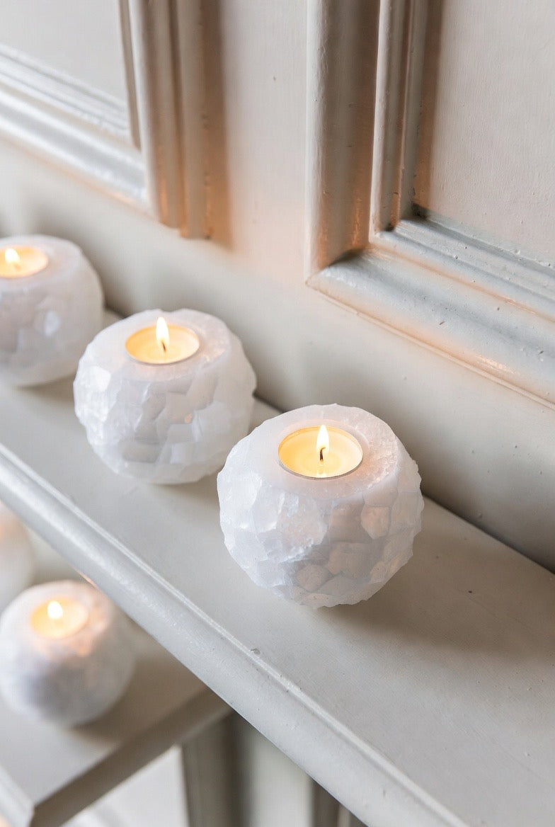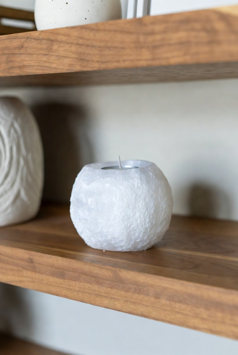 WHITE SELENITE SNOW BALL CANDLEHOLDER