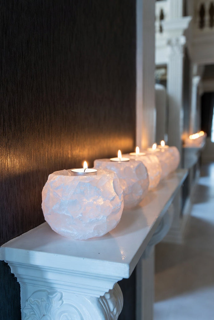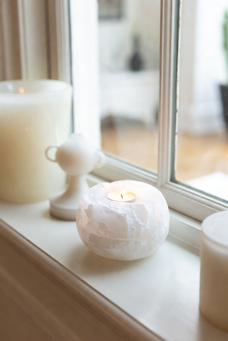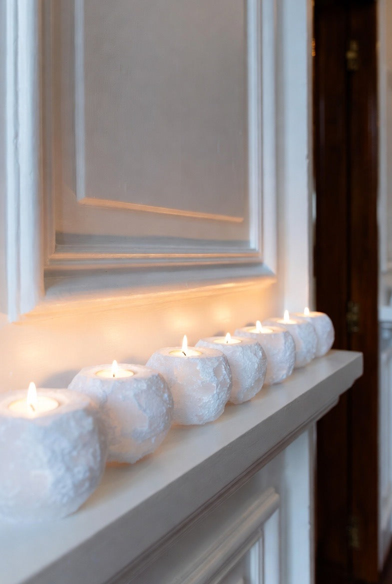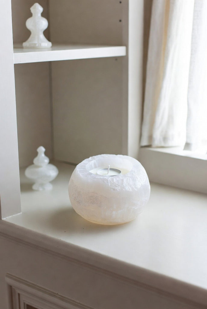 WHITE SELENITE SNOW BALL CANDLEHOLDER