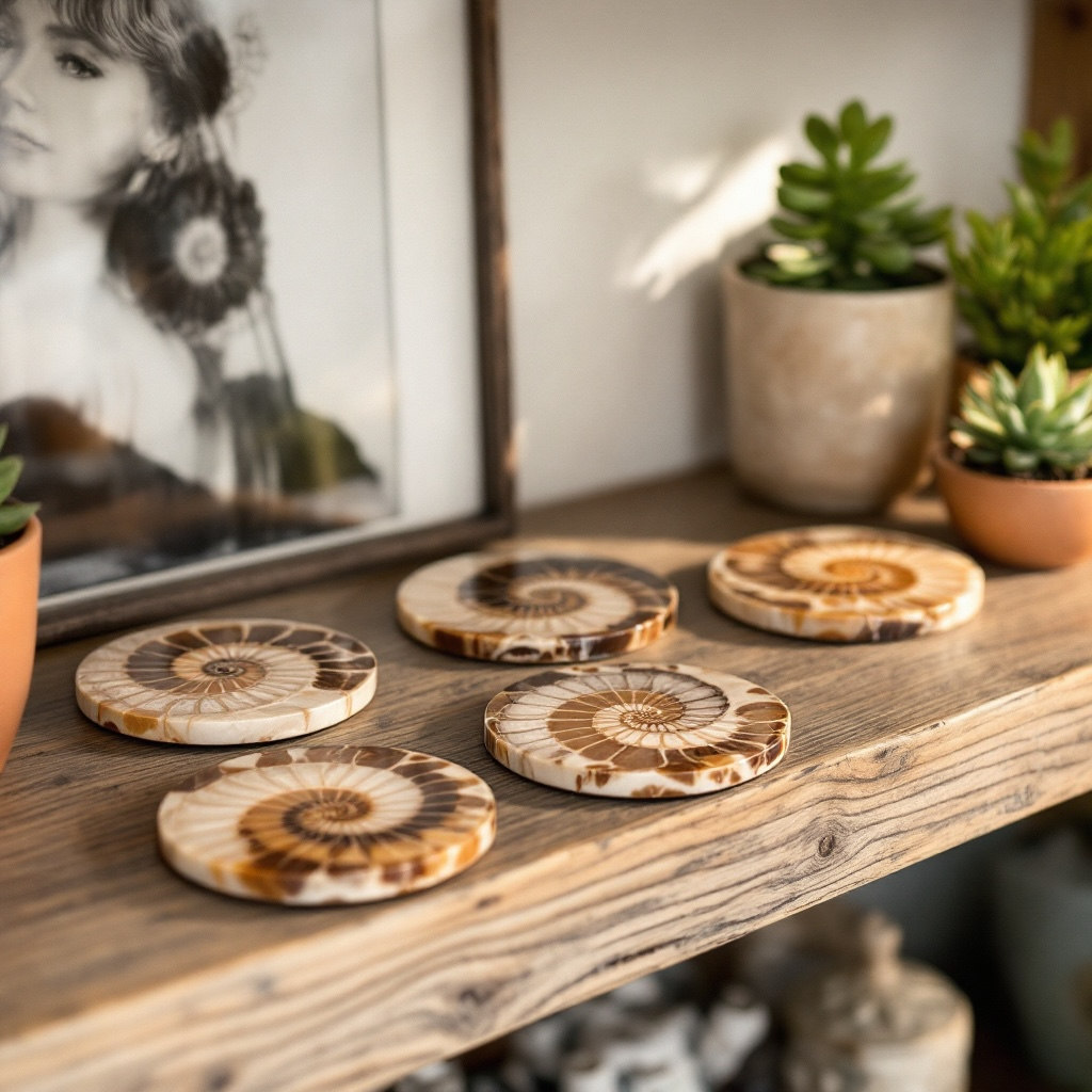 FOSSILIZED AMMONITE & ORTHOCERAS SERVING COLLECTION