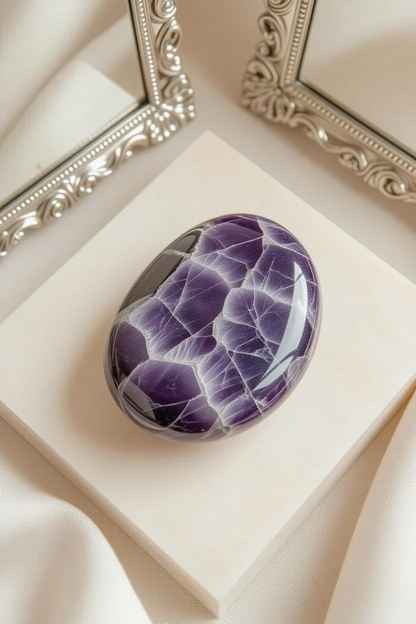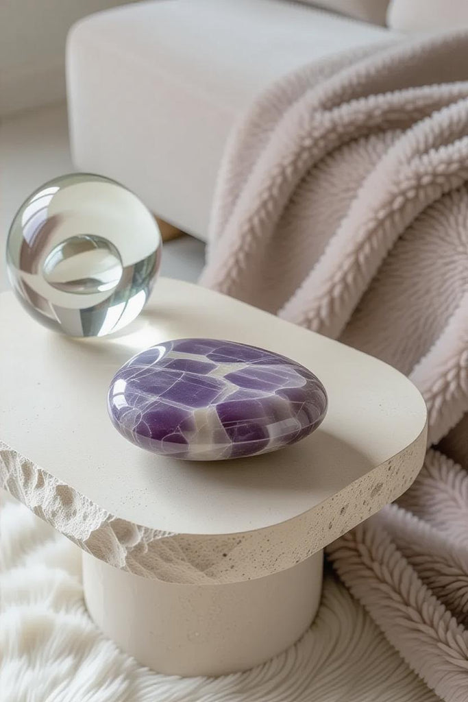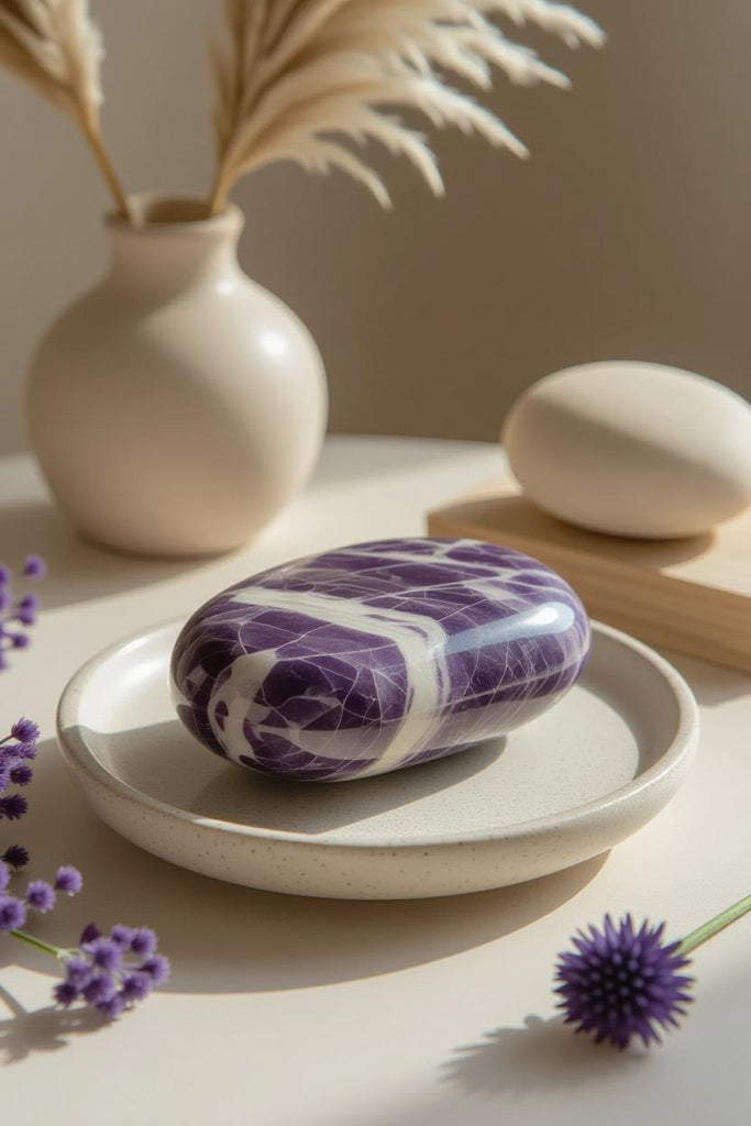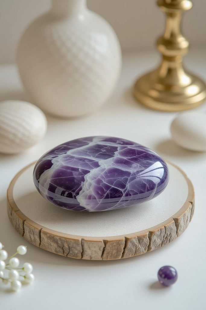 Introduce a touch of tranquil elegance to your home with the Lepidolite Palm Stone — a polished gem of muted lilac, soft silver shimmer, and soothing presence. More than a crystal, it’s a refined accent piece that blends the calming energy of nature with the elevated aesthetic of modern luxury interiors.