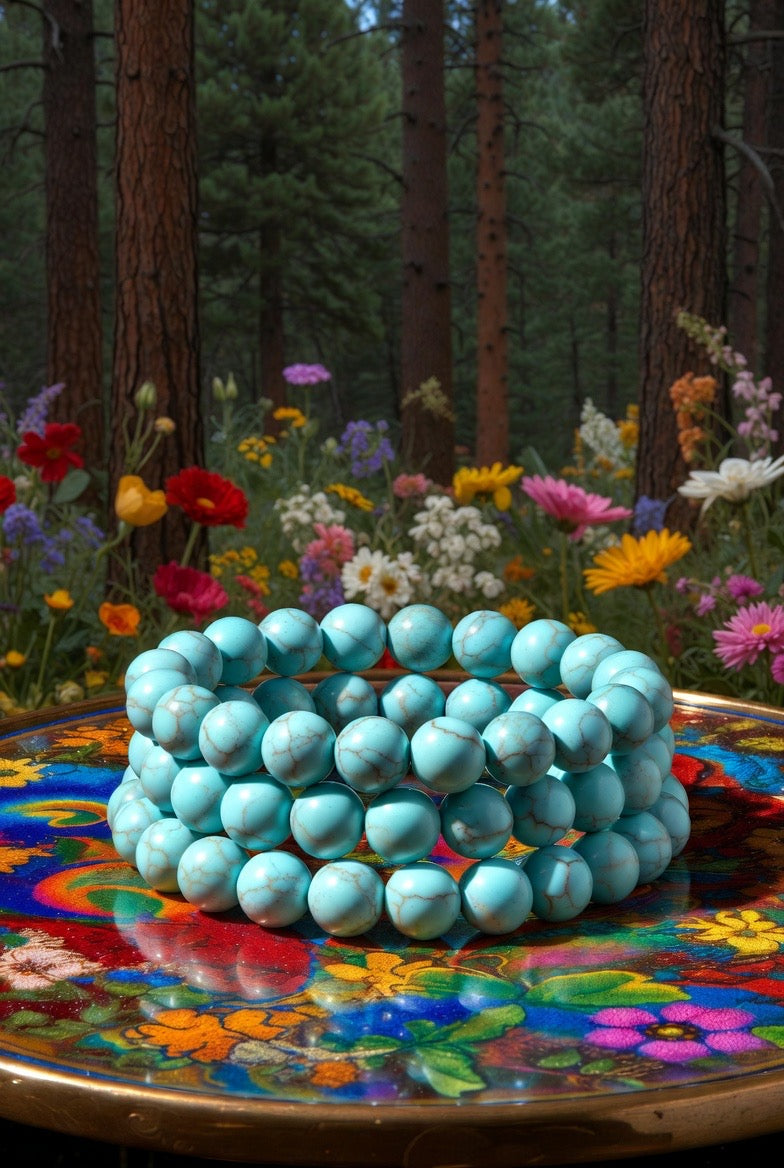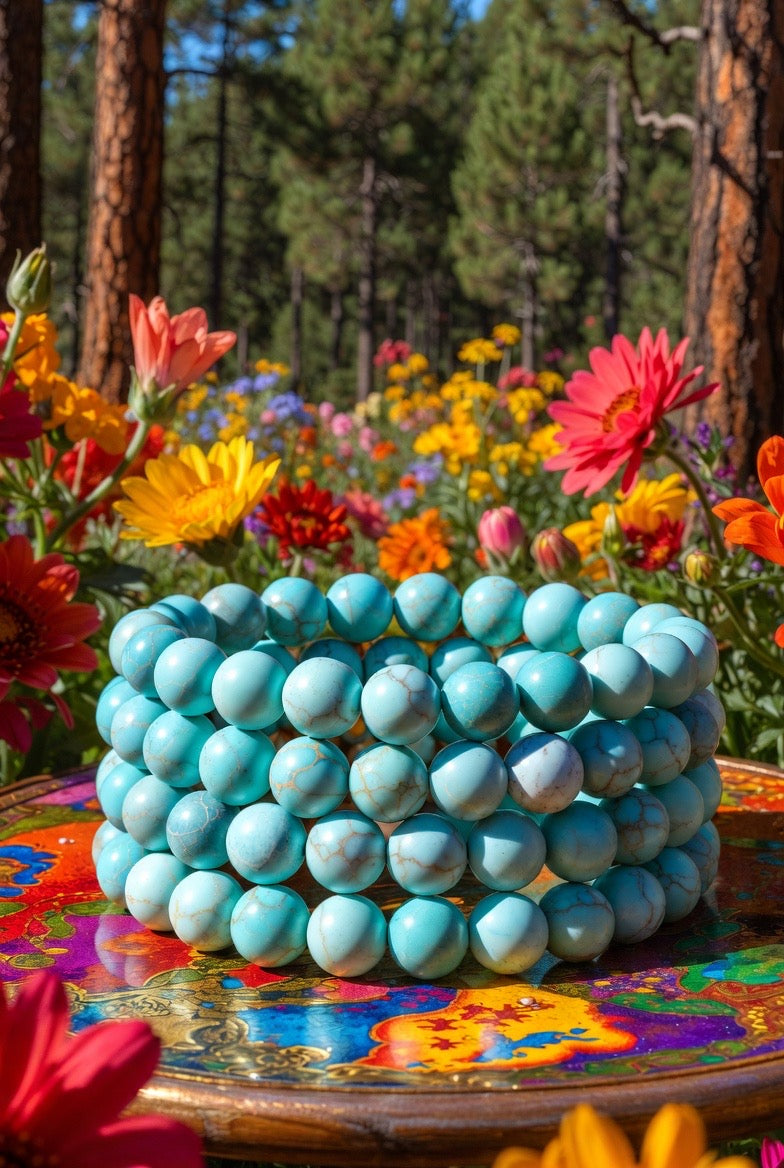 This listing is for 1 (one) TURQUOISE HOWLITE Gemstone Bracelet.Β Yours will arrive lovingly parceled and ready for enjoyment!