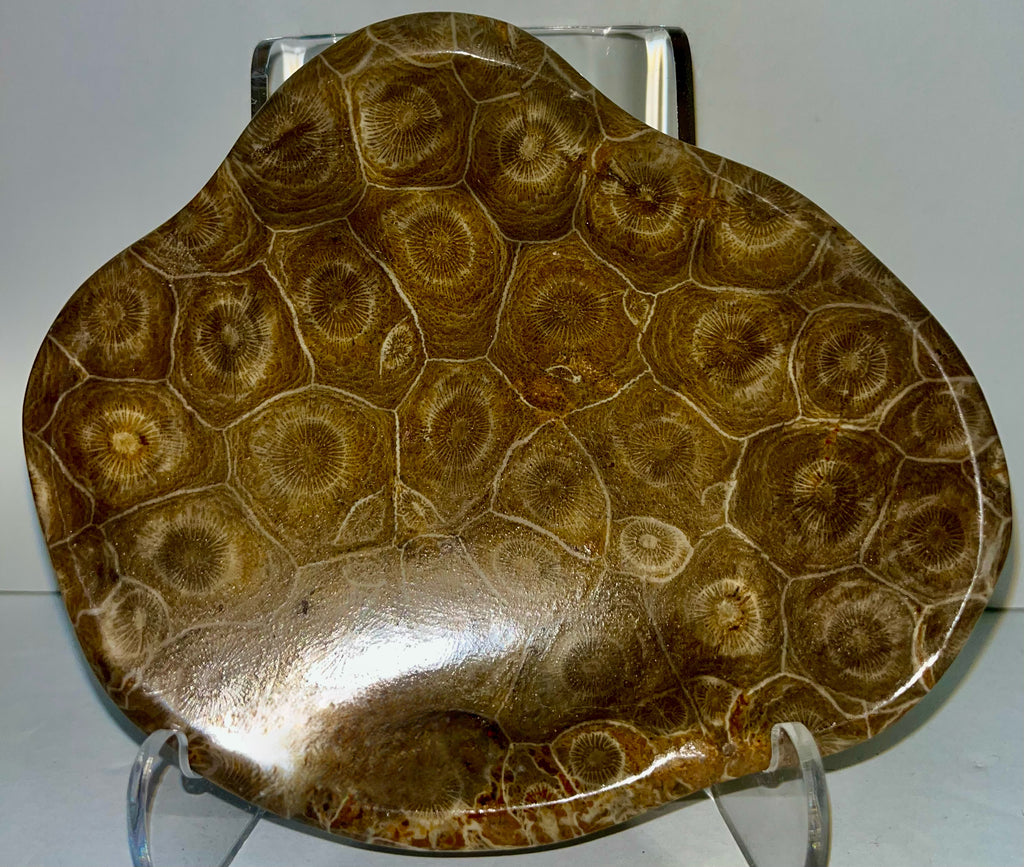FREEFORM FOSSIL CORAL DISH WITH POLISHED EDGES