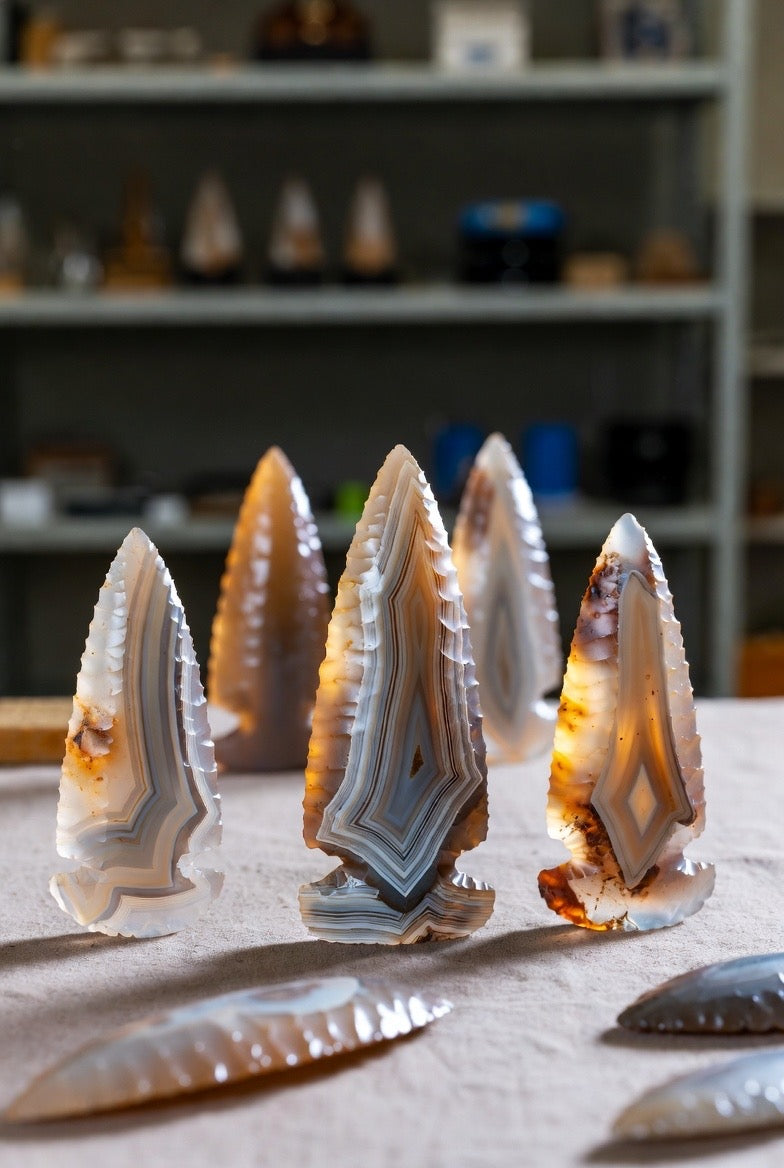 Bring a touch of rustic elegance and ancient craftsmanship into your home with our Hand-Carved Agate Arrowhead – a stunning piece of natural decor that blends history, art, and nature.