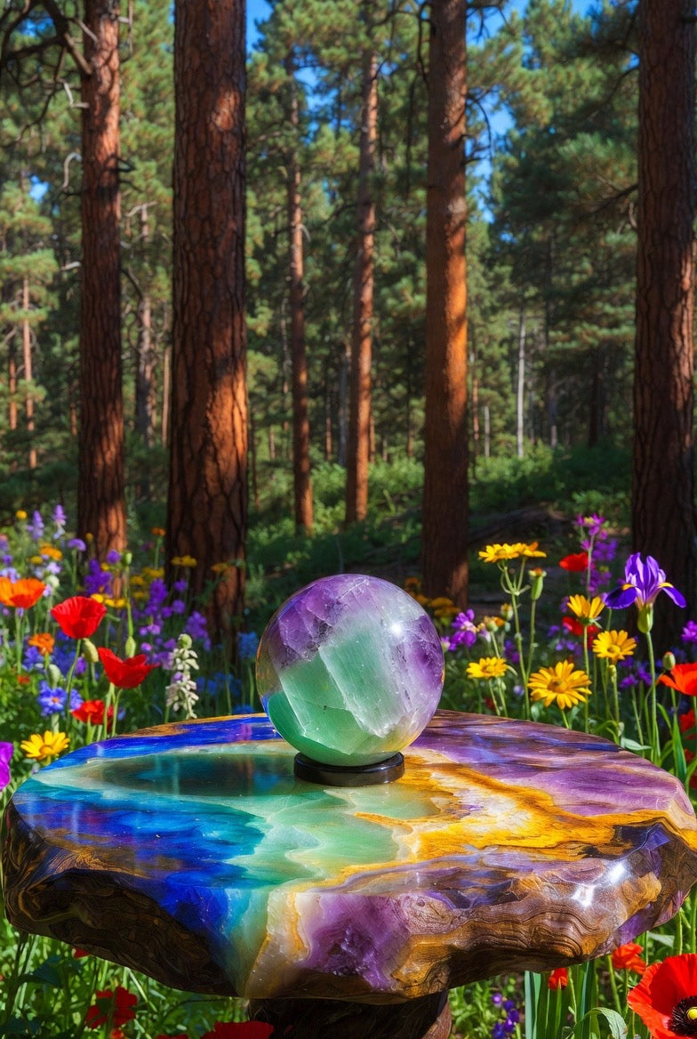 This listing is for 1 (one) RAINBOW FLUORITE Gemstone Sphere.Β Yours will arrive lovingly parceled and ready for enjoyment!