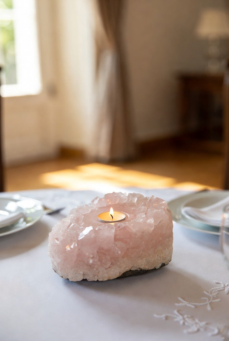 Bring soft, luxurious beauty into your home with our Rose Quartz Tealight Candleholder — a stunning piece carved from genuine rose quartz, known for its calming energy and natural elegance. 💗🕯️