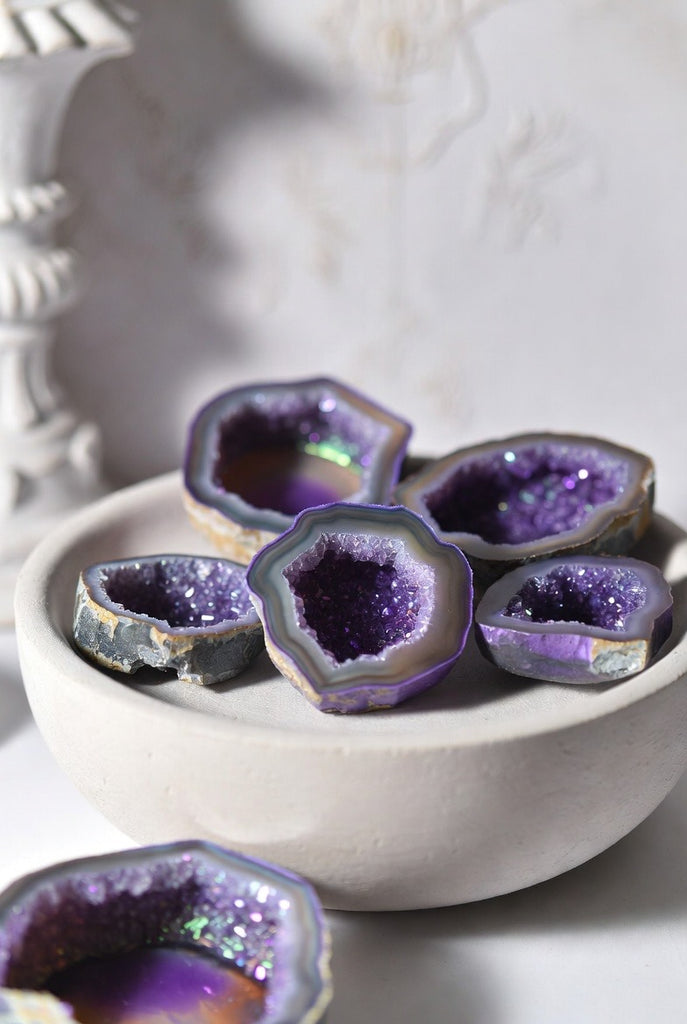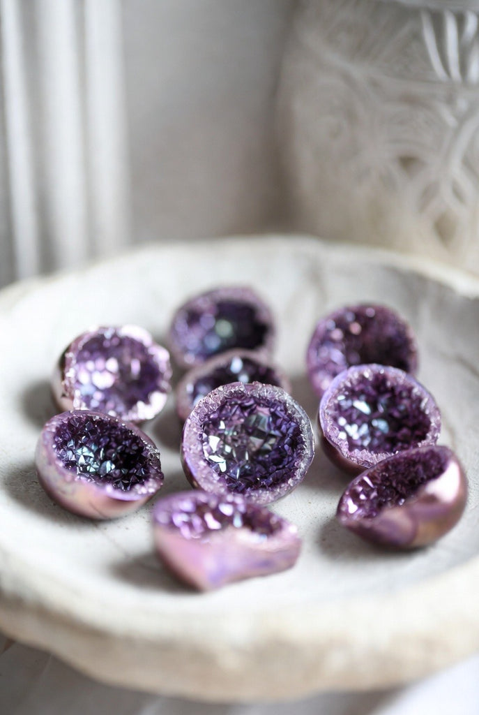 This listing is for 1 (one) PURPLE Angel Aura Geode Half. Yours will arrive lovingly parceled and ready for enjoyment!