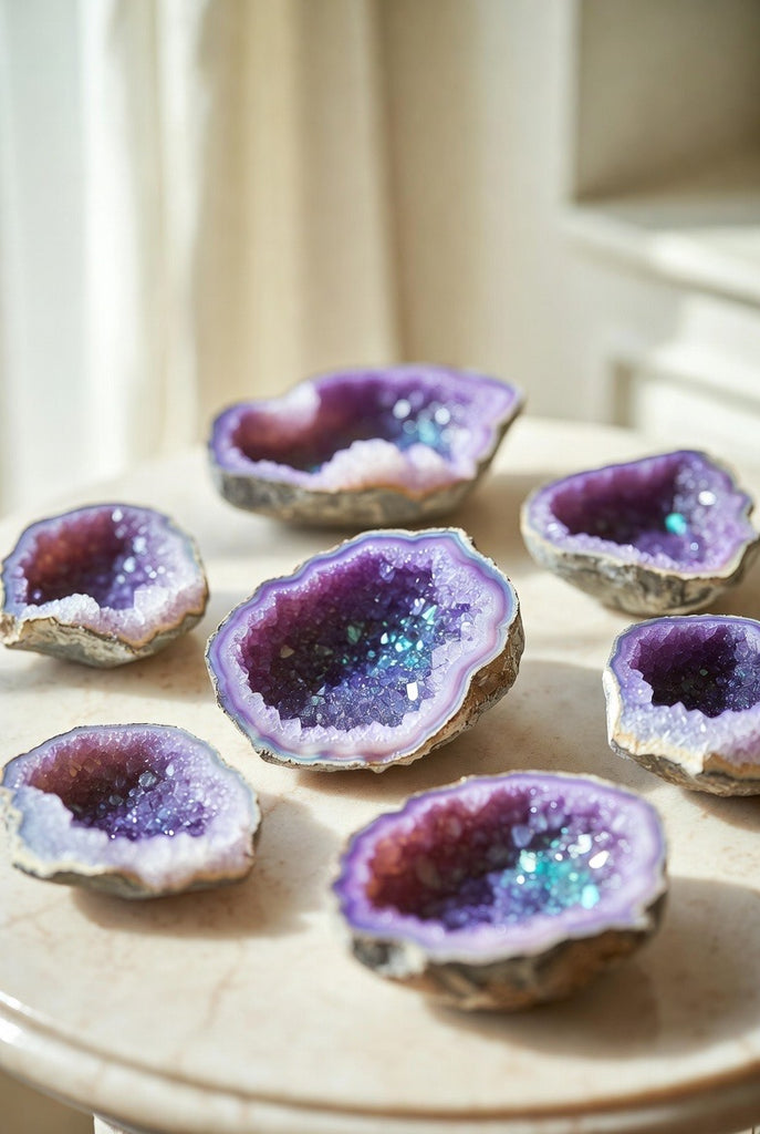Whether you’re looking to add color, elegance, or a touch of magic, these geodes are a stunning addition to any collection. Each half is carefully crafted to highlight its natural beauty, creating an eye-catching piece that will inspire awe and wonder. 🌟
